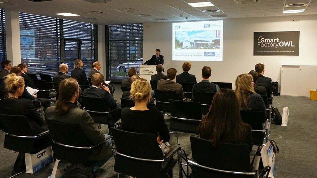 Bernd Stöber (Stemmer Imaging GmbH) eröffnete die Fachkonferenz mit dem Keynote-Vortrag zum Thema „Multispektral-Imaging. Neue Methoden und Technologien für die Inspektion, Analyse und Diagnose im Maschinen- und Anlagenbau, für Lebensmittel und in der Medizin“. Anschließend tauschten sich die Experten in der SmartFactoryOWL in verschiedenen Sessions und Gesprächsrunden über neuste Entwicklungen aus dem Fachgebiet aus. „Es gab rege Diskussionen um aktuelle Forschungsthemen und deren Umsetzungsmöglichkeiten in die Praxis“, resümiert Lohweg.