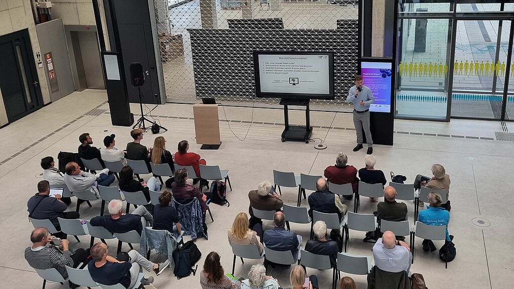 Artificial Intelligence - and Large Language Models (LLMs) in particular - are increasingly finding their way into medicine. While some headlines proclaim AI as a "career killer for doctors", many people are already using chatbots such as ChatGPT as personal health advisors. This makes it all the more important to clearly communicate both the opportunities and risks of this technology. In his lecture "Doctor AI? How are language models changing medicine?", Patrick Gaudl explained to the 30 attendees how LLMs work, where their potential lies in medicine and where risks such as hallucinations and misinformation set important limits.